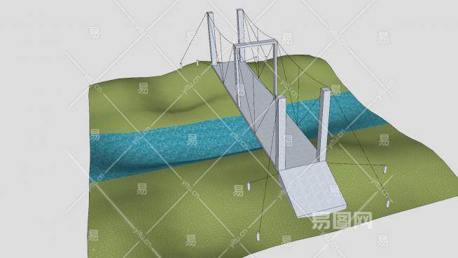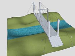 简易斜拉桥梁SU模型下载_sketchup草图大师SKP模型