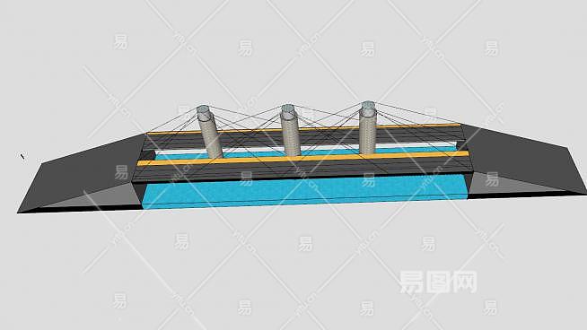 双桥梁公路斜拉桥SU模型下载_sketchup草图大师SKP模型