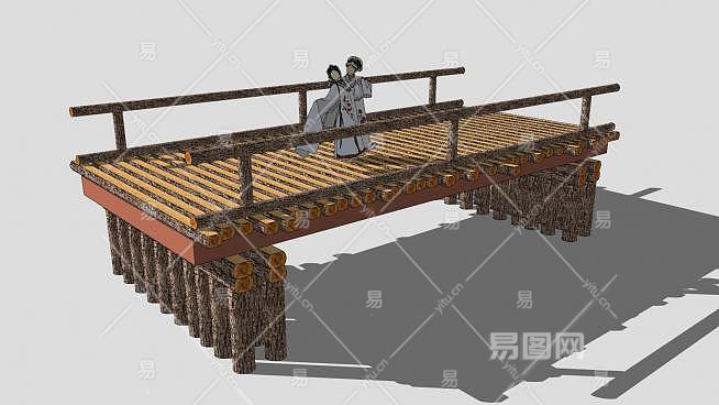 自然风木桩桥SU模型下载_sketchup草图大师SKP模型