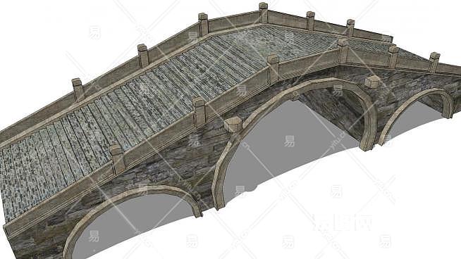三洞石拱桥SU模型下载_sketchup草图大师SKP模型