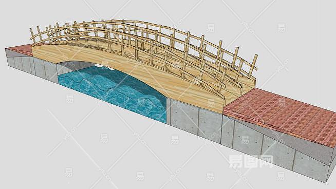 中式弧形木制拱桥SU模型下载_sketchup草图大师SKP模型
