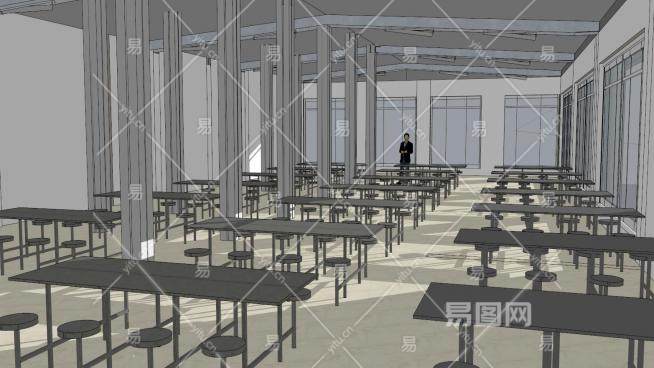 这是现代室内食堂饮食店SU模型,指设于机关、学校、厂矿等企事业单位、为供应其内部职工、学生等就餐的非盈利性场所。现代室内食堂饮食店SU模型下载_sketchup图大师SKP模型
