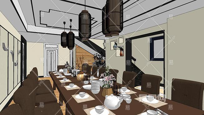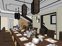 中式酒店餐厅装修SU模型下载_sketchup草图大师SKP模型