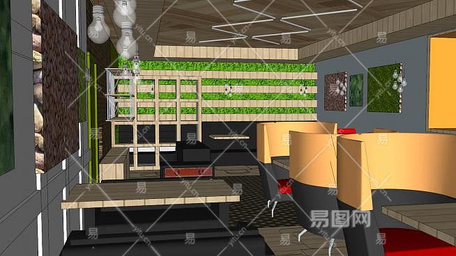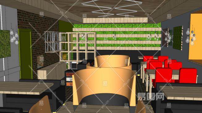 田园风格餐饮店SU模型下载_sketchup草图大师SKP模型