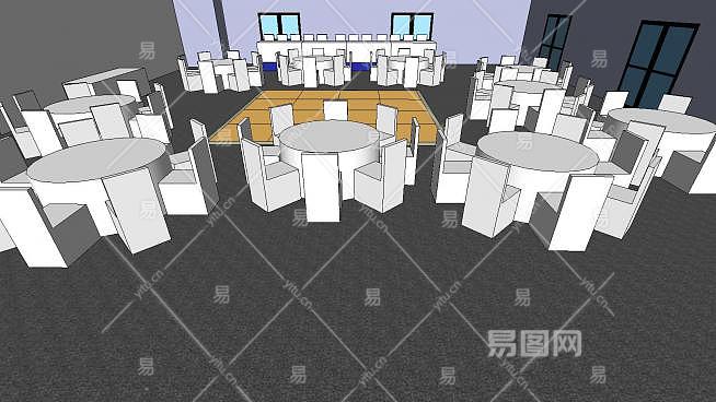 酒店婚姻宴会厅SU模型下载_sketchup草图大师SKP模型