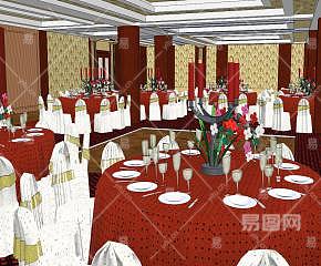 酒店喜庆宴会厅SU模型下载_sketchup草图大师SKP模型