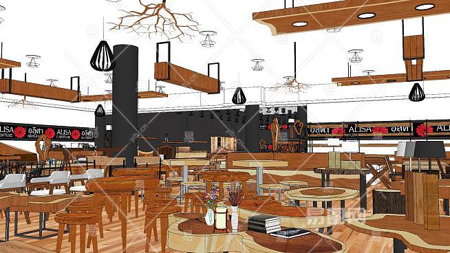 餐饮店美食店餐馆SU模型下载_sketchup草图大师SKP模型