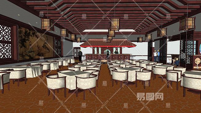 中式中餐厅SU模型下载_sketchup草图大师SKP模型