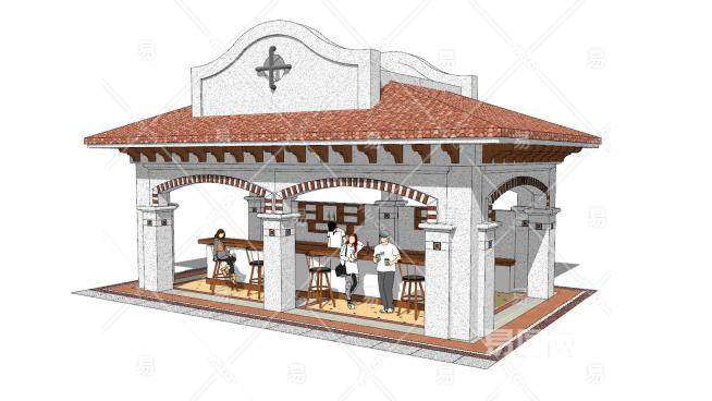 欧式建筑快餐店SU模型下载_sketchup草图大师SKP模型
