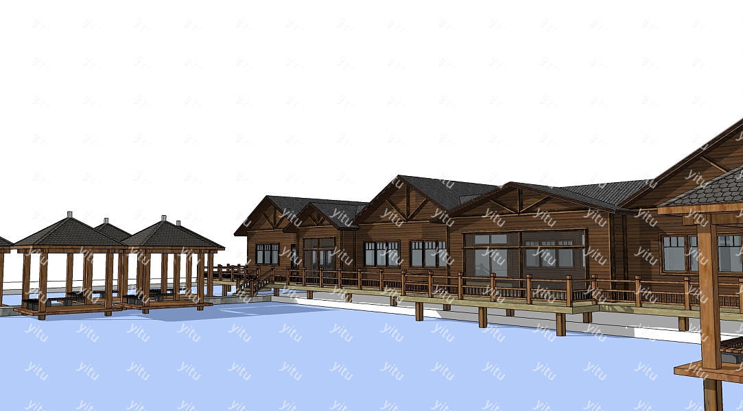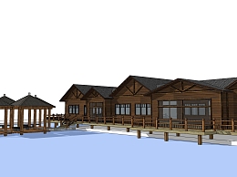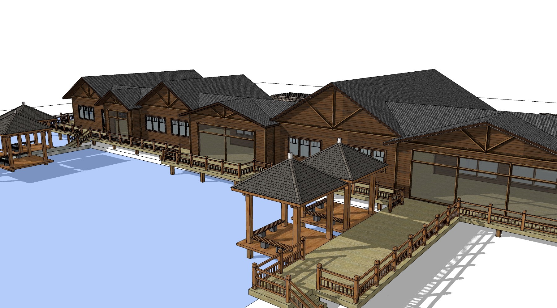 中式度假酒店免费su模型下载、度假酒店草图大师模型下载