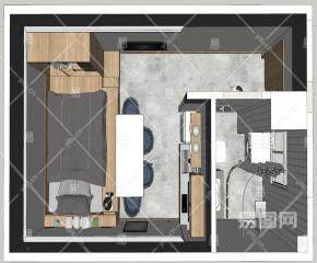 北欧单身公寓电视SU模型下载_sketchup草图大师SKP模型