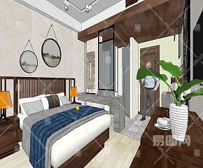 现代工业风民宿客房SU模型下载_sketchup草图大师SKP模型