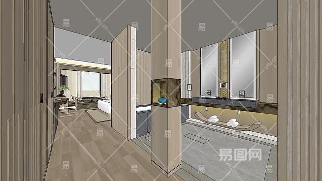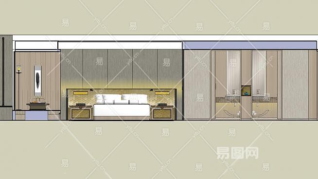 这是HBA中式酒店标间SU模型,酒店(又称为宾馆、旅馆、旅店、旅社、商旅、客店、客栈,台湾作饭店,港澳、来西亚、新加坡等作酒店)其基本定义是提供安全、舒适,令利用者得到短期的休息或睡眠的空间的商业机构。HBA中式酒店标间SU模型下载_sketchup图大师SKP模型