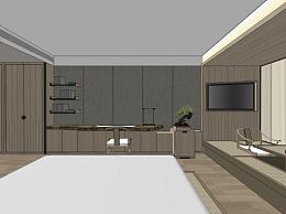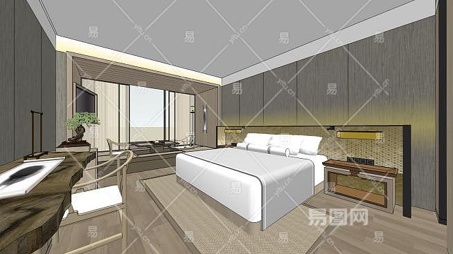 HBA中式酒店标间SU模型下载_sketchup草图大师SKP模型