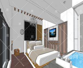 这是现代酒店装修客房SU模型,酒店(又称为宾馆、旅馆、旅店、旅社、商旅、客店、客栈,台湾作饭店,港澳、来西亚、新加坡等作酒店)其基本定义是提供安全、舒适,令利用者得到短期的休息或睡眠的空间的商业机构。现代酒店装修客房SU模型下载_sketchup图大师SKP模型