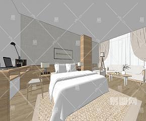 现代港式风格酒店客房SU模型下载_sketchup草图大师SKP模型