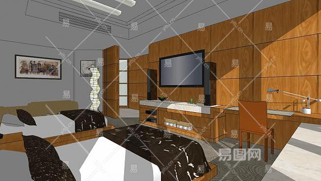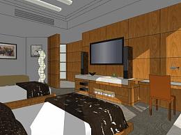 公寓式酒店双人间SU模型下载_sketchup草图大师SKP模型