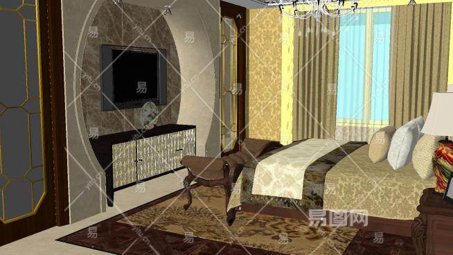 这是美式酒店客房套房SU模型,美式风格,顾名思义是来自于美国的装修和装饰风格。是殖民风格中最著名的代表风格,某种意义上已经成了殖民风格的代名词。美式酒店客房套房SU模型下载_sketchup图大师SKP模型