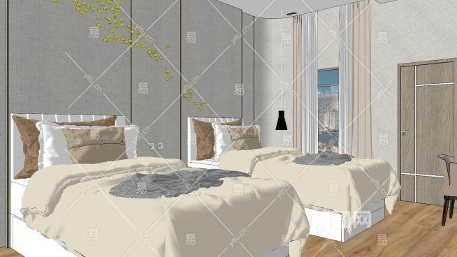 简约酒店双人套房SU模型下载_sketchup草图大师SKP模型