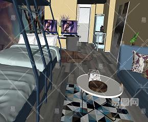 电酒店竞四人客房SU模型下载_sketchup草图大师SKP模型