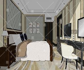 酒店套房装修SU模型下载_sketchup草图大师SKP模型