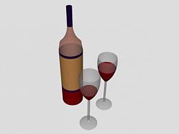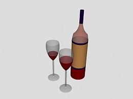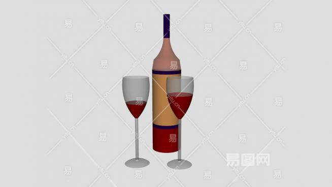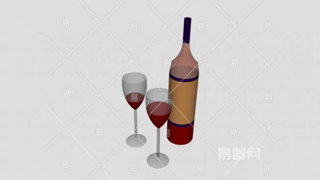红酒酒瓶酒杯SU模型下载_sketchup草图大师SKP模型
