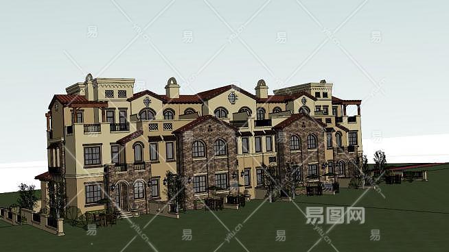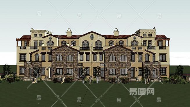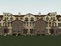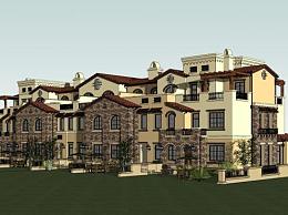 地中海风格联排别墅SU模型下载_sketchup草图大师SKP模型