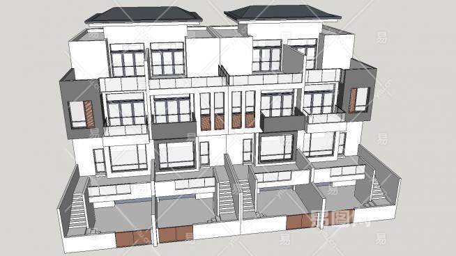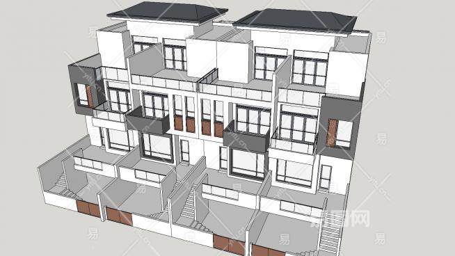 现代风格联排别墅SU模型下载_sketchup草图大师SKP模型