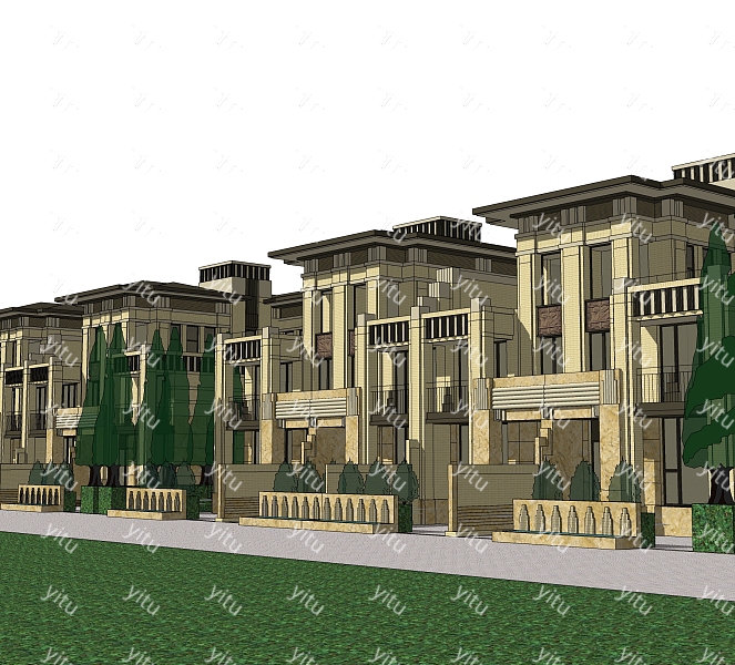 当前的位置:首页 > sketchup > sketchup模型 > 建筑 > 别墅居住 > 新古典连排别墅su模型下载,sketchup别墅草图大师模型