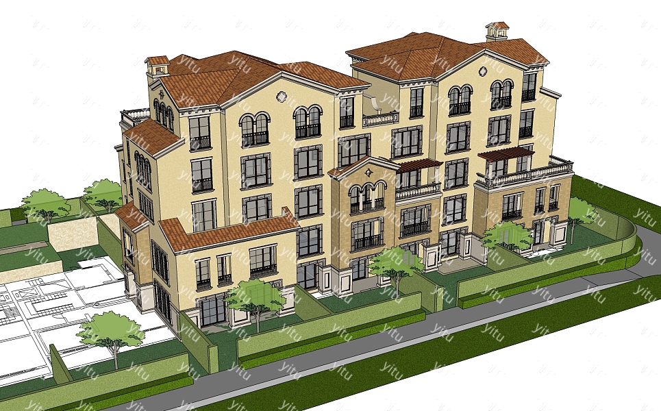 欧式联排别墅su模型,别墅sketchup模型下载内容简介:欧式别墅展现出一种高贵、奢华且大气的感觉,整体设计奢华且不失品味,具有浓郁古典气息,属于典型的西方复古造型,易图网为您提供下载服务,好看实用。