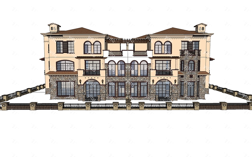 欧式联排别墅sketchup模型,别墅su模型下载内容简介:欧式别墅展现出一种高贵、奢华且大气的感觉,整体设计奢华且不失品味,具有浓郁古典气息,属于典型的西方复古造型,易图网为您提供下载服务,好看实用。