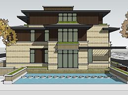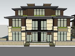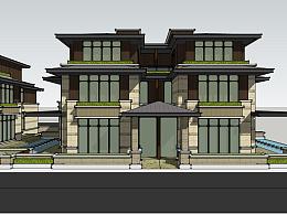 中式联排别墅su模型,别墅sketchup模型下载