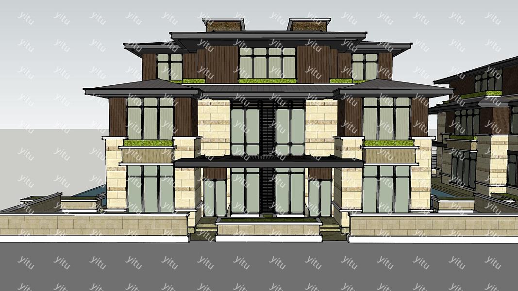 中式联排别墅su模型,别墅sketchup模型下载内容简介:整个建筑没有多余的装饰,五层联排别墅,全部采用中式元素设计,打造一个从里到外的中式风格。对称式设计,在视觉上绝对的观赏性,户,木制栏杆,中式别墅的典范。易图网为你提供联排别墅su模型,好看实用。
