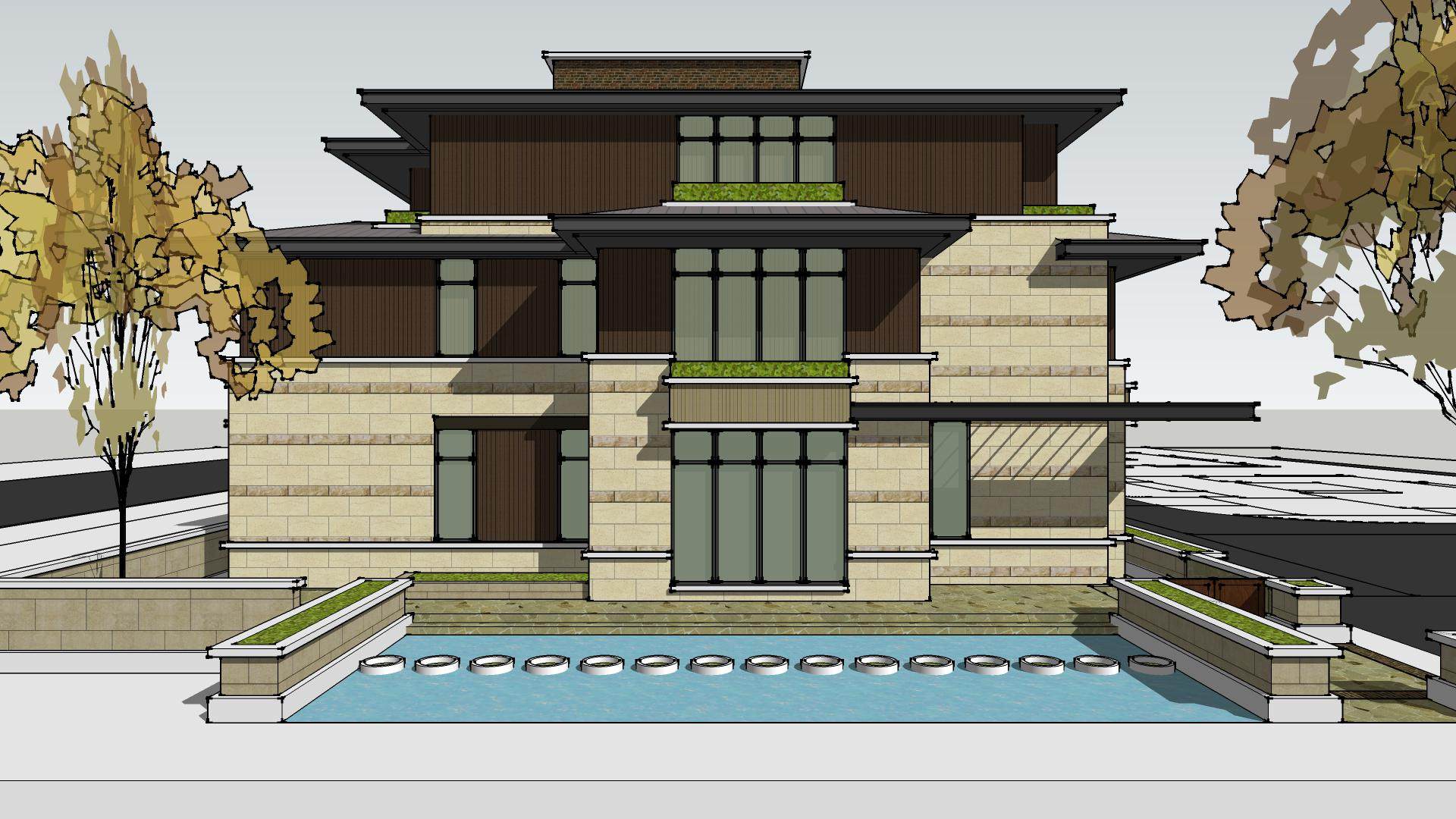 当前的位置:首页 > sketchup > sketchup模型 > 建筑 > 别墅居住 > 中式联排别墅su模型,别墅sketchup模型下载