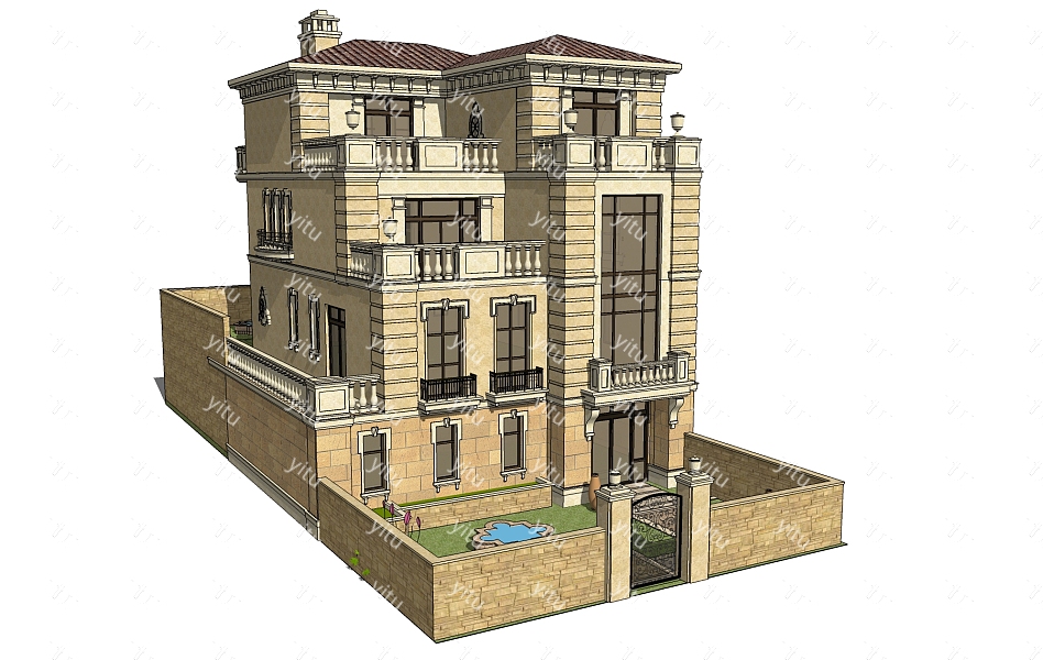 欧式别墅sketchup模型,别墅图大师模型下载内容简介:欧式别墅展现出一种高贵、奢华且大气的感觉,整体设计奢华且不失品味,具有浓郁古典气息,属于典型的西方复古造型,易图网为您提供下载服务,好看实用。