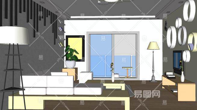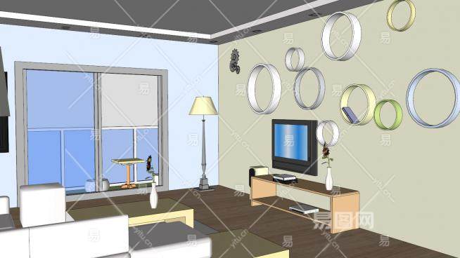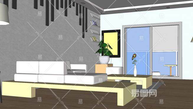 这是现代休闲客厅室内风格SU模型,一个简单的客厅设计程序。现代休闲客厅室内风格SU模型下载_sketchup图大师SKP模型