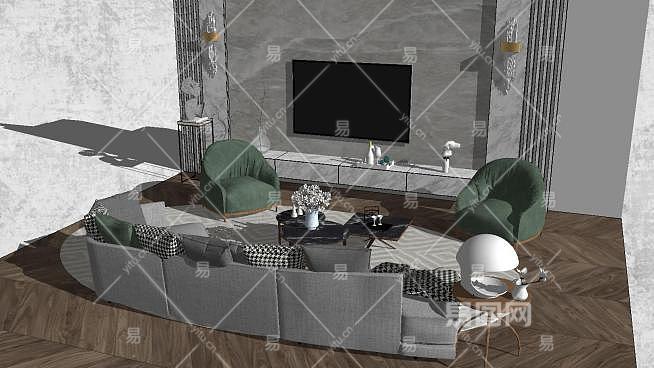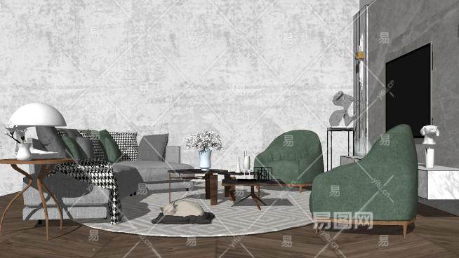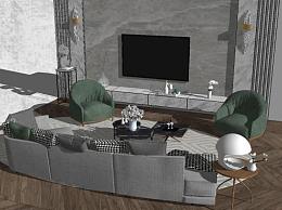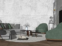 现代风格客厅沙发组合SU模型下载_sketchup草图大师SKP模型