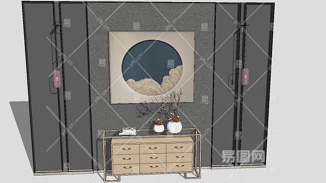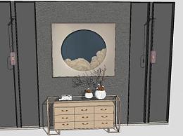 新中式客厅背景墙SU模型下载_sketchup草图大师SKP模型