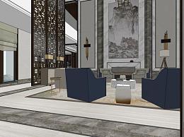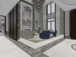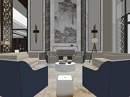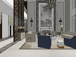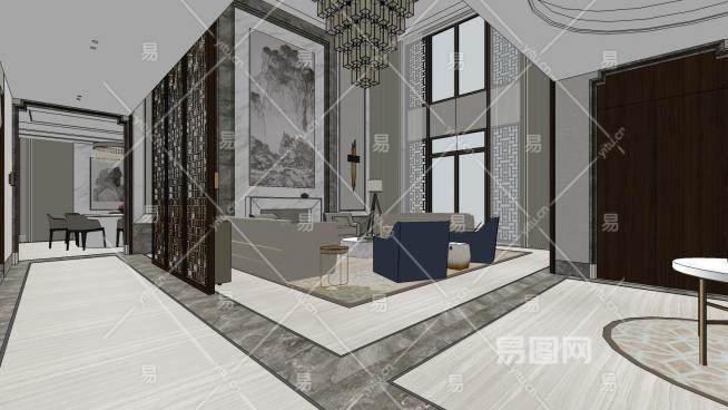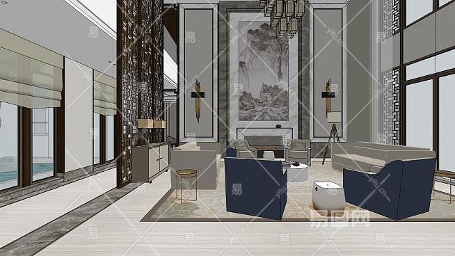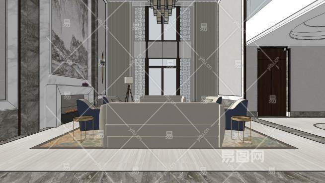 新中式别墅全景客厅SU模型下载_sketchup草图大师SKP模型
