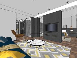 现代风格单身公寓客厅装修SU模型下载_sketchup草图大师SKP模型