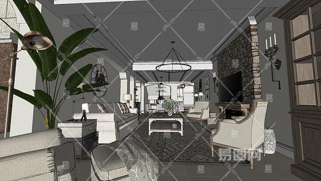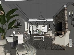 简欧家装客餐厅SU模型下载_sketchup草图大师SKP模型
