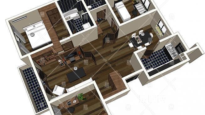 小户型设计su模型下载_sketchup草图大师SKP模型