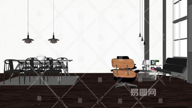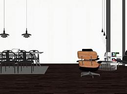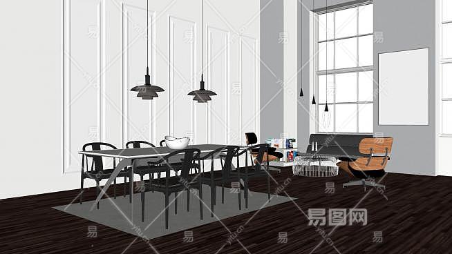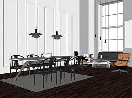 现代简约客厅餐厅室内SU模型下载_sketchup草图大师SKP模型