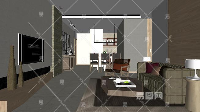 现代户型客餐厅设计SU模型下载_sketchup草图大师SKP模型