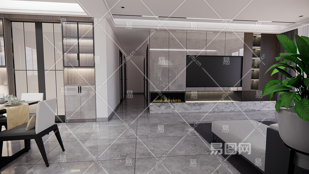 • 现代风格模型、无主灯客餐厅