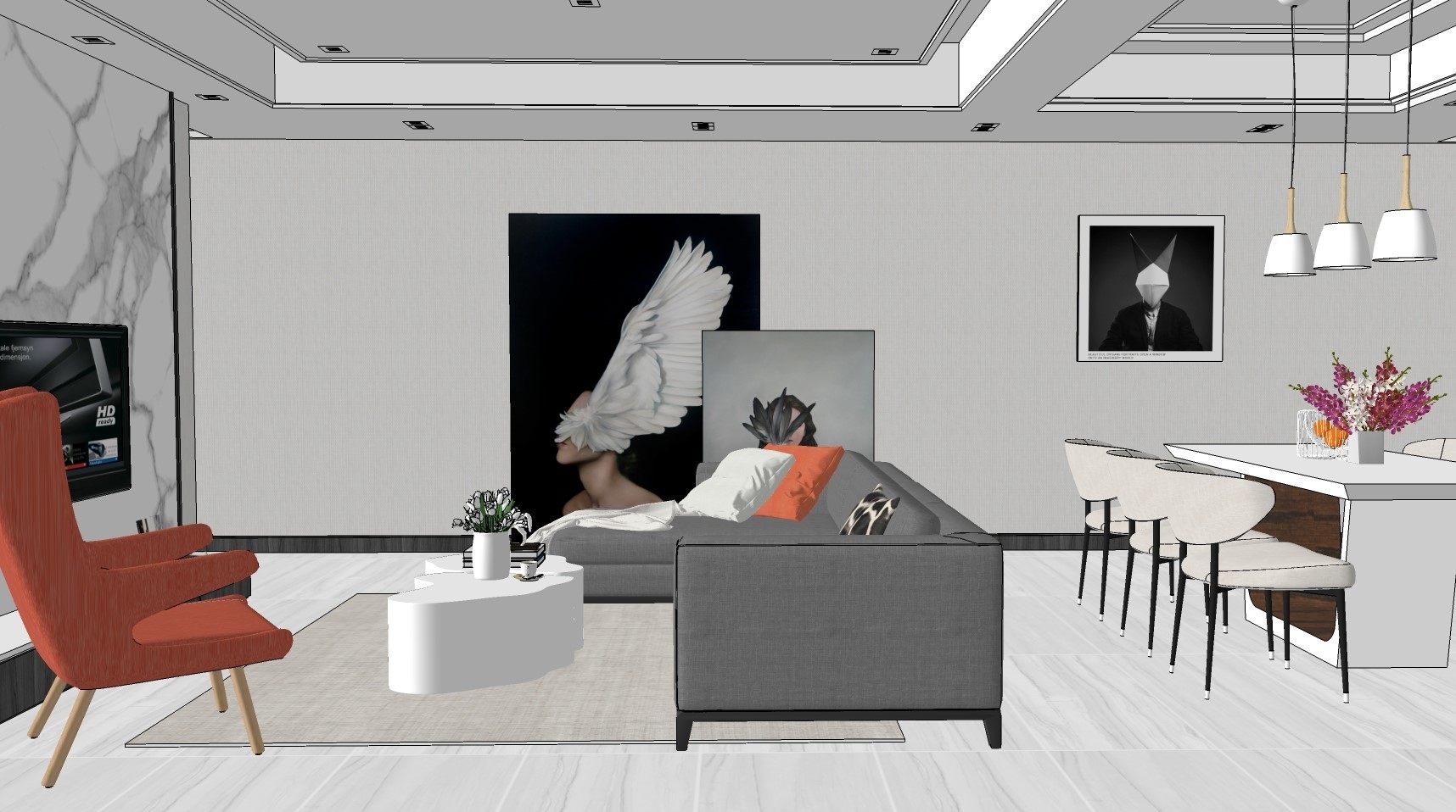 现代简约客厅su模型,客厅sketchup模型下载