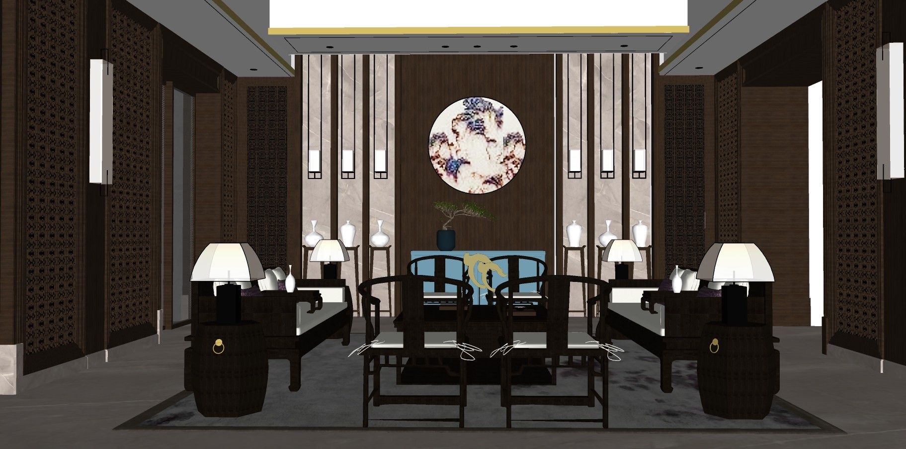 新中式客厅草图大师模型,客厅sketchup模型下载