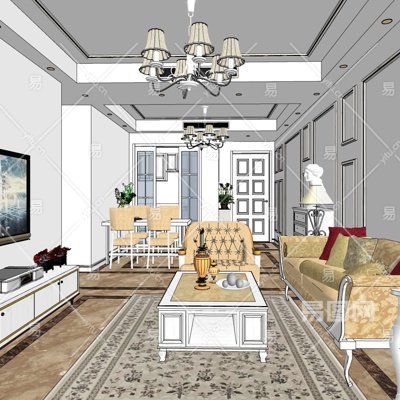 当前的位置:首页 > sketchup > sketchup模型 > 家装 > 客厅 > 简欧客厅餐厅su模型