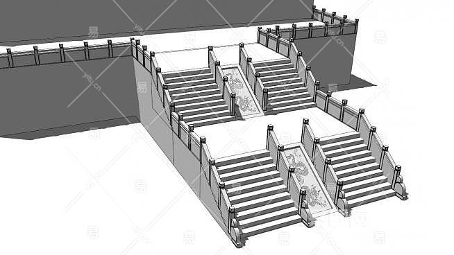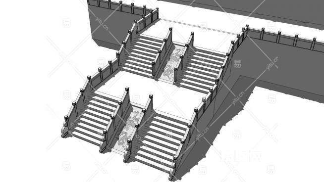 这是白玉栏杆su模型,梯按梯段可分为单跑梯、双跑梯和多跑梯。梯段的平面形状有直线的、折线的和曲线的。白玉栏杆su模型下载_sketchup图大师SKP模型