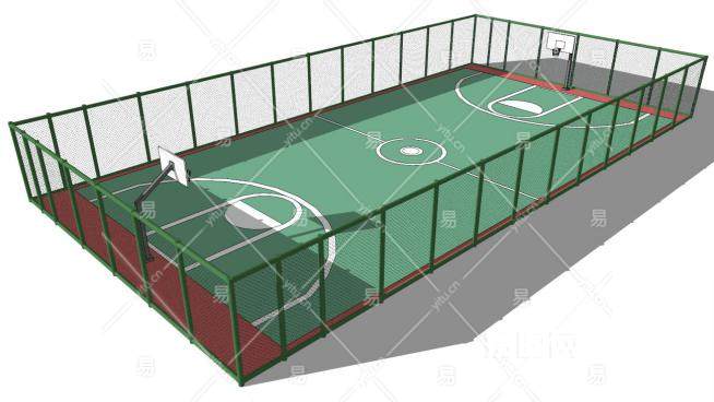 这是篮球栏su模型,篮球比赛场是一个长方形的坚实平面,篮球场长28米,宽15米,无障碍物。篮球场有土质、泥、沥青和木质等。现在的篮球比赛场塑胶面的使用较多。篮球栏su模型下载_sketchup图大师SKP模型